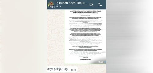 Aceh |07 , Oktober 2024″Dengan adanya yang telah beredar, di kalangan WhatsApp media grop di kabupaten aceh timur. Yang berbunyi, dengan adanya surat terbuka untuk pemimpin aceh timur (bapak pj bupati dan bapak sekda).