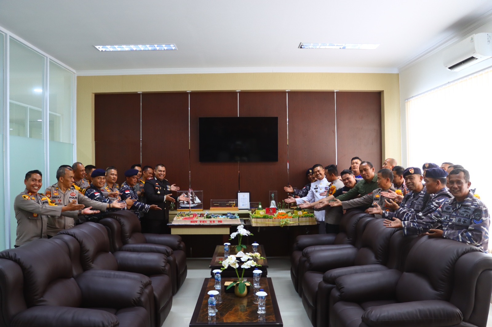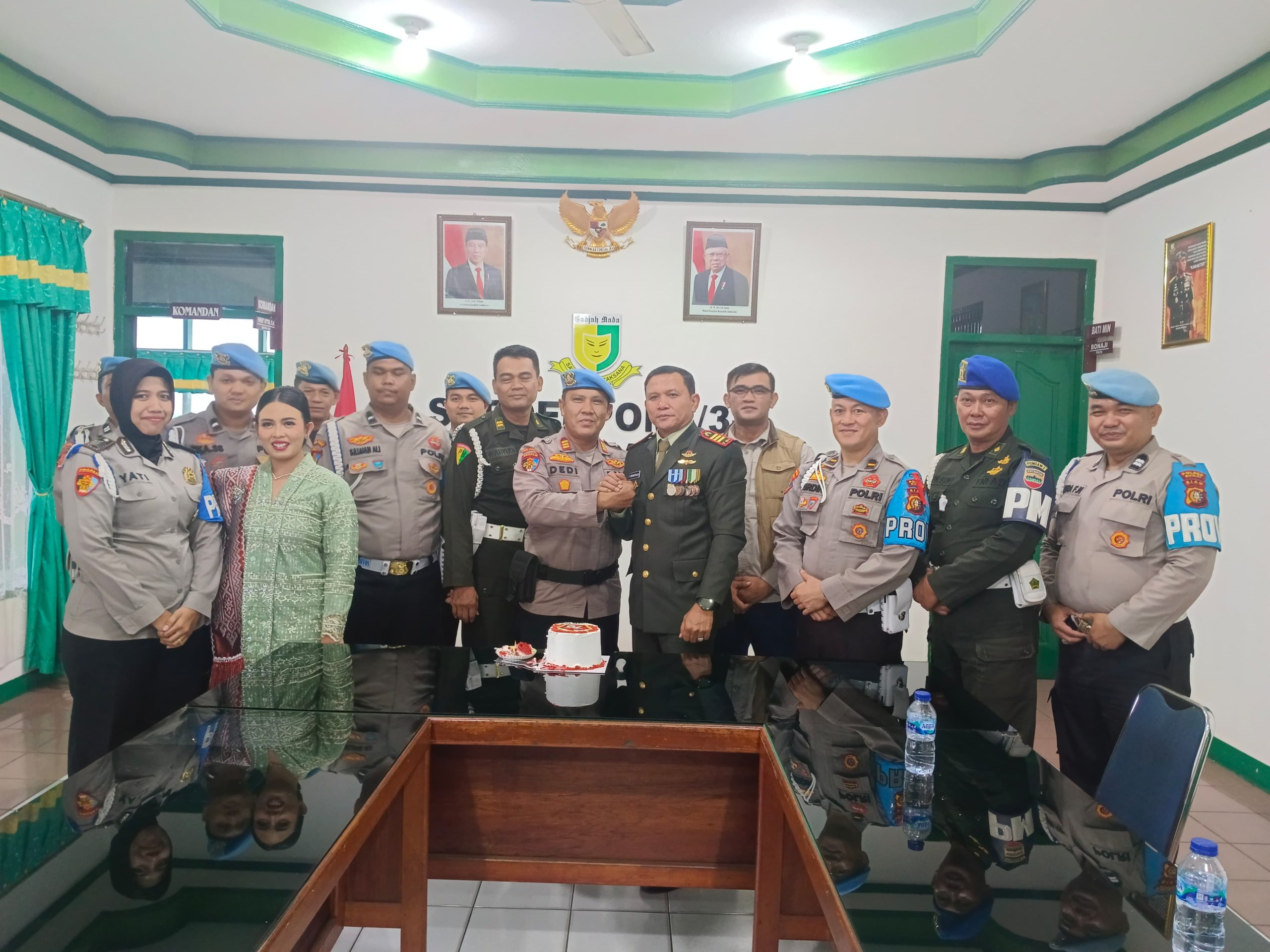 Di sini, kegiatan dilanjutkan dengan pemotongan kue ulang tahun sebagai bentuk simbolis dari peringatan ulang tahun TNI. Kehangatan suasana terlihat ketika personel Polres dan TNI saling berinteraksi dalam suasana penuh kekeluargaan.