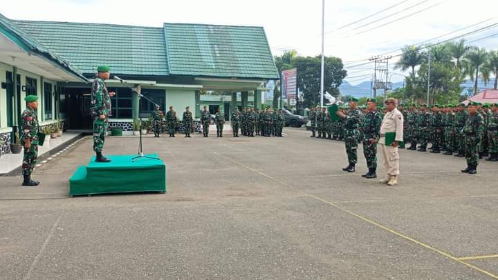Dandim 0417/Kerinci Letkol Inf Budiarto S.I.P,M.I.P. membacakan amanat Panglima TNI Jendral TNI Agus Subiyanto S.E, M.Si