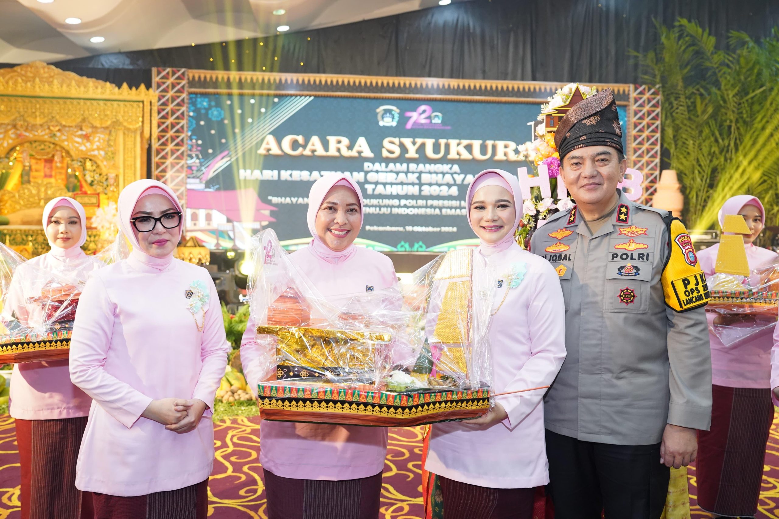 Pekan Baru,//faktahukumnusantara.com – Kapolda Riau Irjen Pol Muhammad Iqbal hadiri kegiatan syukuran dalam rangka Hari Kesatuan Gerak Bhayangkari ke 72, Sabtu (19/10/2024).
