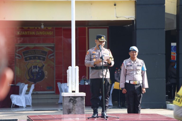 Kapolres Kuantan Singingi, AKBP Pangucap Priyo Soegito, S.I.K., M.H., Dalam amanatnya menyampaikan “Bahwa Polres Kuantan Singingi dan jajaran melaksanakan operasi kepolisian terpusat mantap brata lancang kuning 2023-2024 dengan didukung TNI, pemerintah daerah, instansi terkait dan mitra kamtibmas lainnya dalam rangka pengamanan pemilu tahun 2024 yang dimulai dari tanggal 19 oktober 2023 s/d tahapan pengucapan sumpah/janji presiden dan wakil presiden periode 2024-2029 yang dilaksanakan pada hari ini tanggal 20 oktober 2024,” jelas Kapolres.