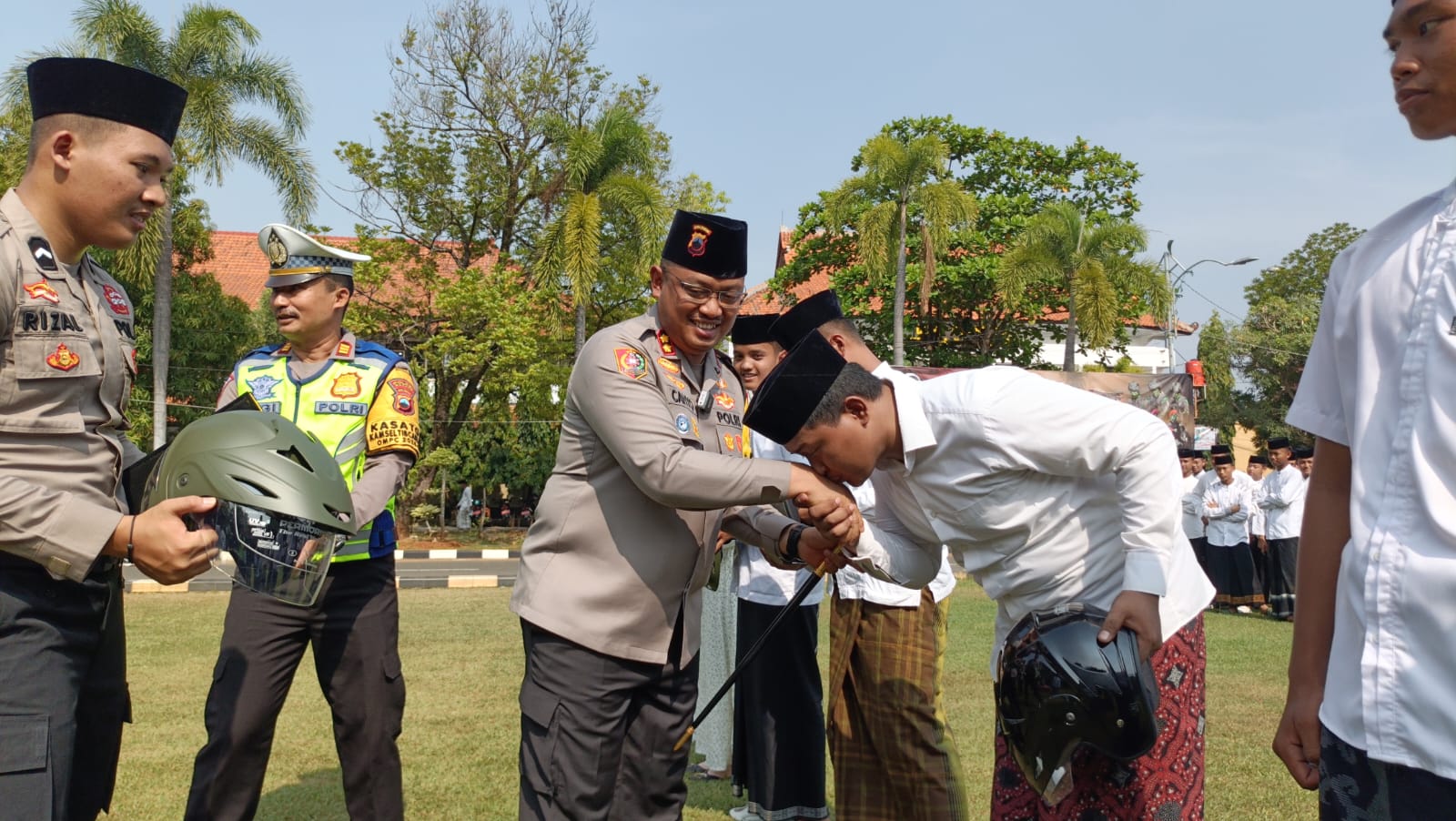 Polres Batang Bagikan 10 Helm untuk Para Santri