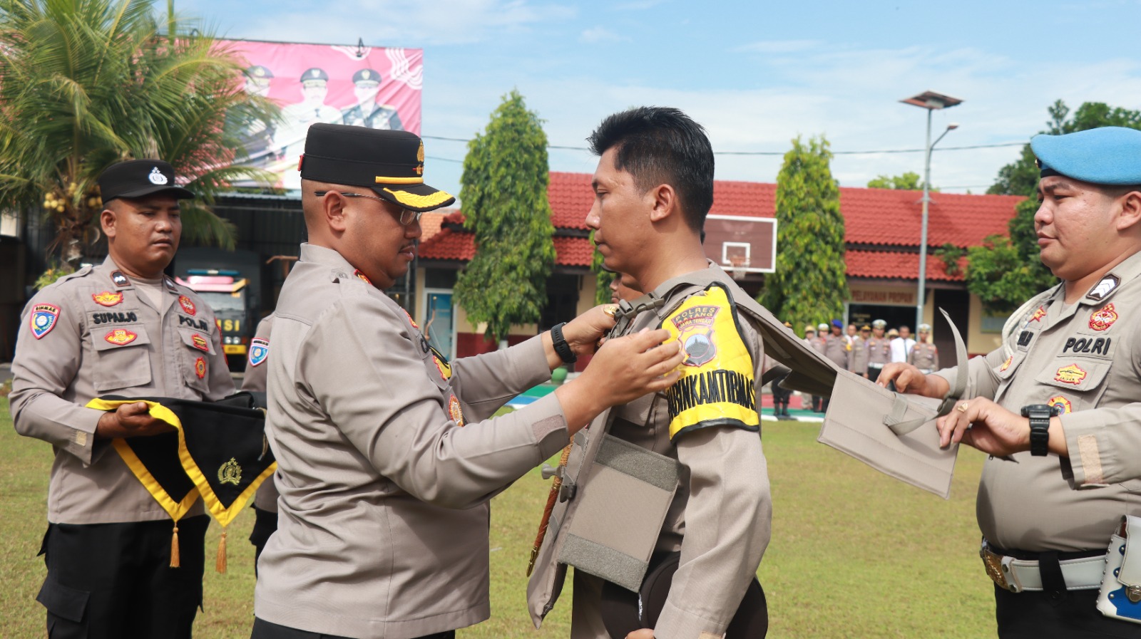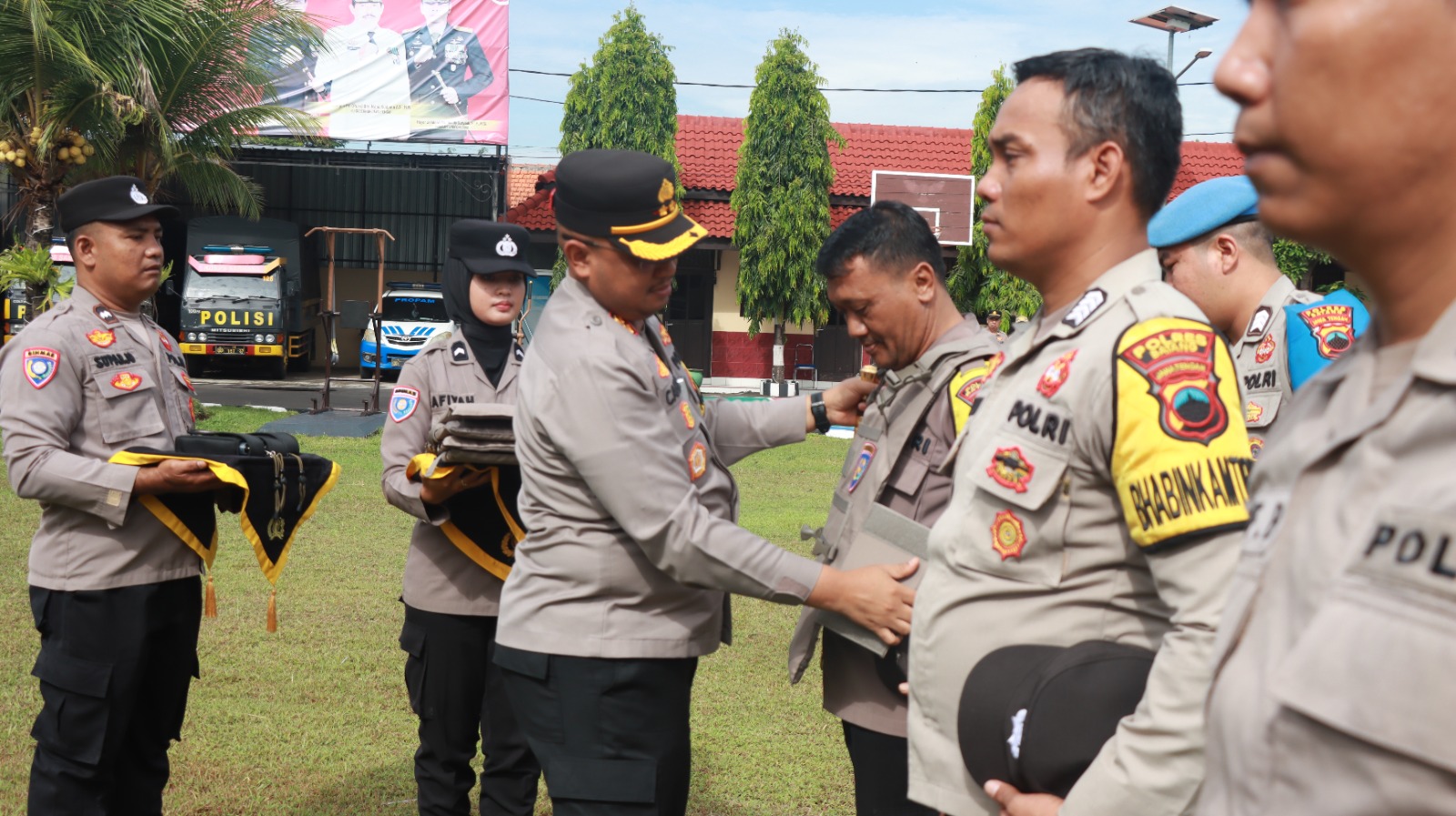 Dalam kesempatan ini, Kapolres Batang menyerahkan sarana kelengkapan Kaporlap Bhabinkamtibmas berupa 65 rompi anti sayat dan 58 senter Bhabinkamtibmas.