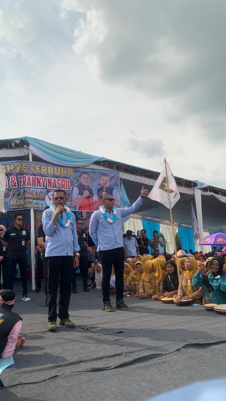 Dalam kampanye tersebut tim pemenangan Arlan-Frangky bapak ustad Zulkarnain mengungkapkan, bahwa mereka adalah tim yang siap memenangkan Arlan-Frengky serta beliau juga mengajak masyarakat untuk memilih paslon nomor urut 1 pada 27 November mendatang kemudian beliau memulai acara dengan doa bersama.