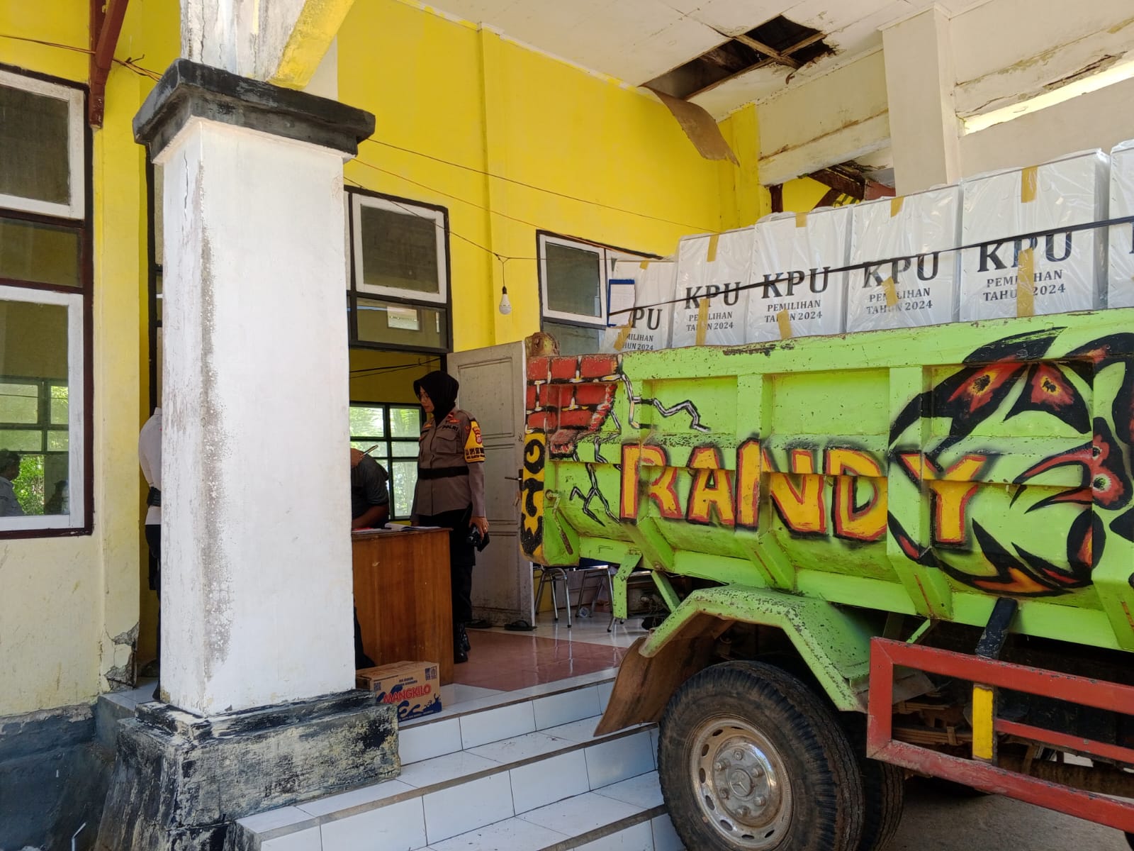 Logistik tersebut diangkut menggunakan tiga mobil dumping truck dengan nomor polisi DT 9857 FE, DT 9411 AL, dan DT 9439 AL. Pendistribusian disaksikan oleh pihak KPU, Pemerintah Daerah, Polri, TNI, serta Bawaslu untuk menjamin transparansi dan keamanan proses.