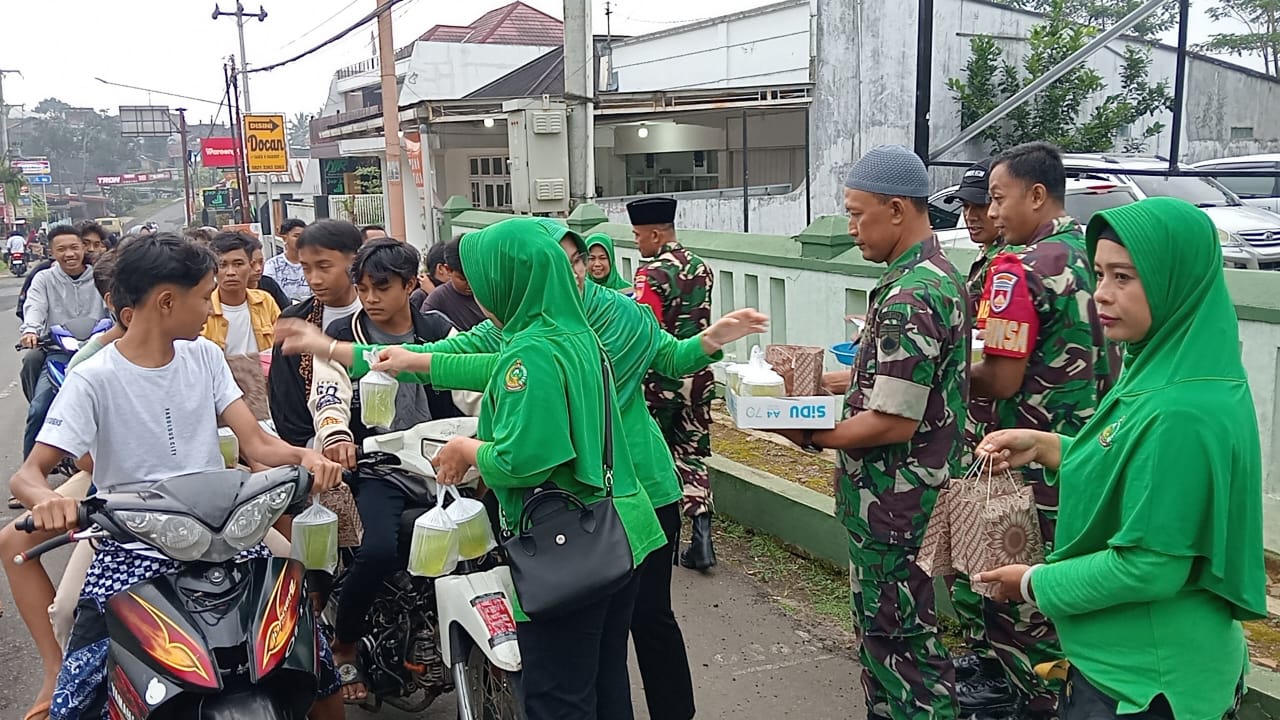 Batang– Dalam rangka menyemarakkan bulan suci Ramadan 1446 H, Koramil 05/Reban Kodim 0736/Batang bersama Persit Kartika Candra Kirana Ranting 06 Reban menggelar aksi sosial dengan membagikan takjil kepada masyarakat bertempat di jalan raya depan Makoramil, Rabu (5/3/25).