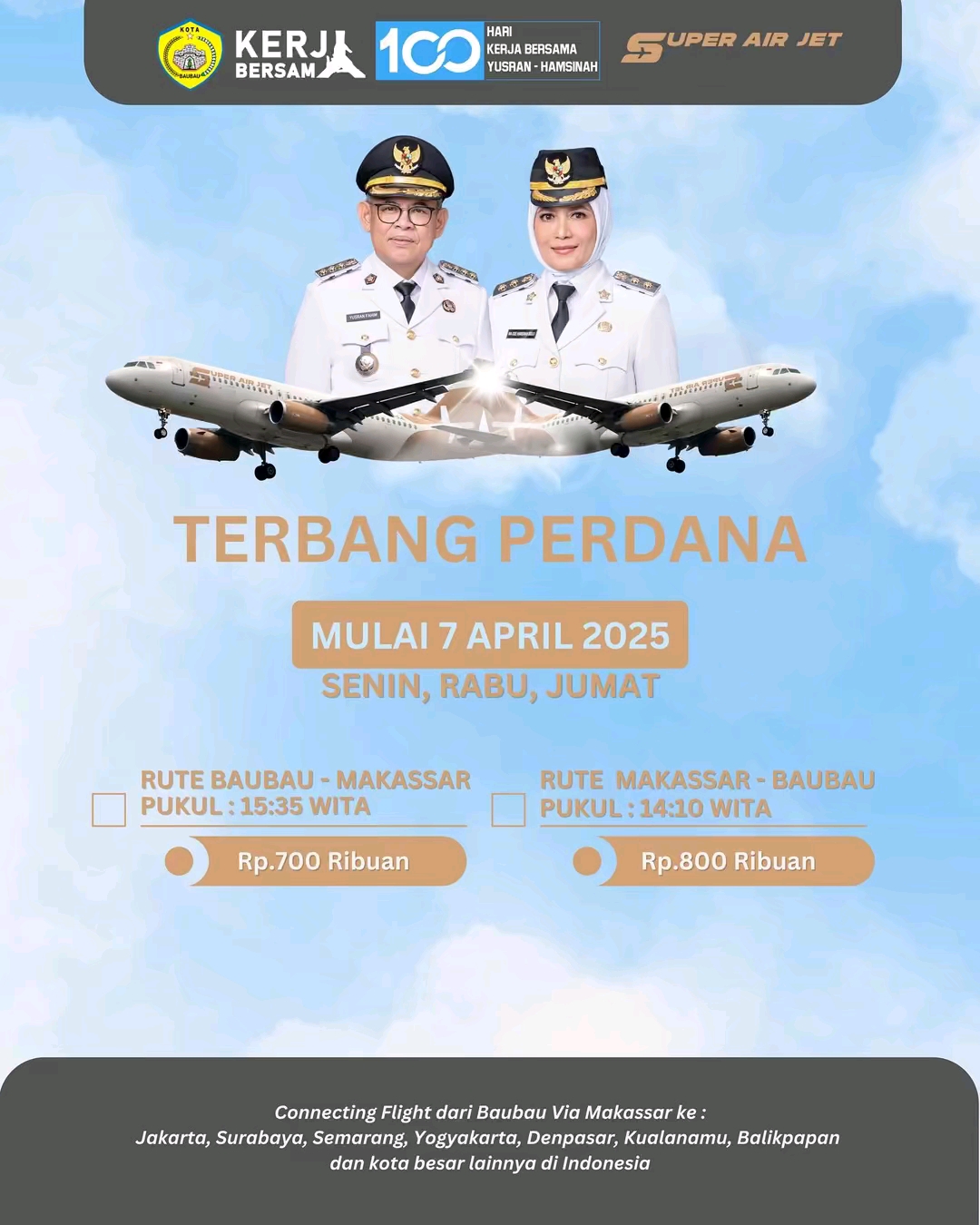 Resmi 7 April, Pesawat Super Air Jet Mulai Beroperasi di Baubau