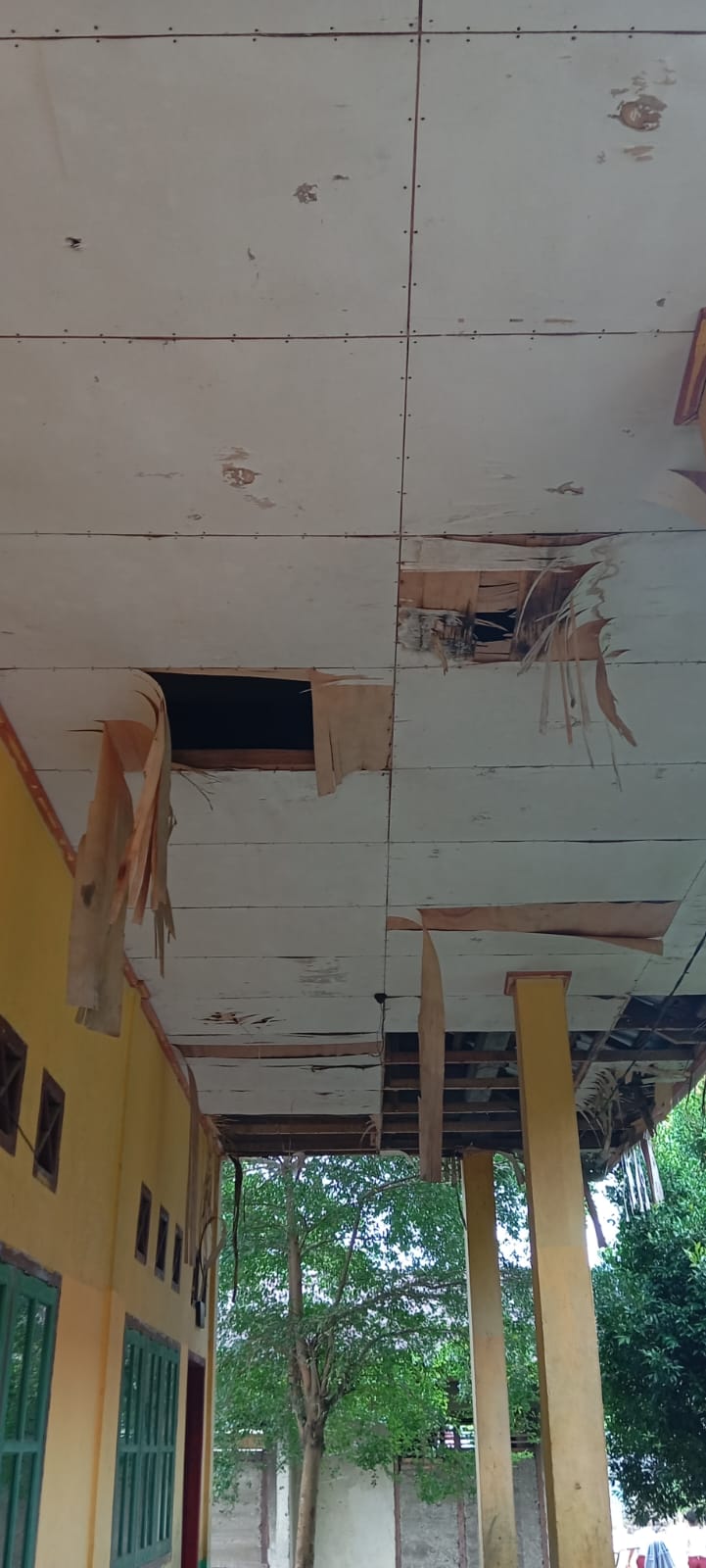 Saat awak media melakukan investigasi di Sdn 049/VII Ladang panjang Kabupaten Sarolangun,Jambi Selasa (03/06). Ditemukan banyaknya kerusakan ringan, yaitu di bagian plafon tampak triplek nya sebagian jebol, terkelupas dan dinding diduga tidak ada pengecetan.