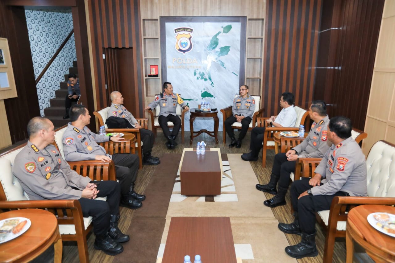 Maluku Utara—faktahukumnusantara.com-Kepala Kepolisian Daerah (Kapolda) Maluku Utara, Irjen Pol. Drs. Waris Agono, M.Si, menerima kunjungan silaturahmi dari Tim Inspektorat Pengawasan Umum (Itwasum) Polri di Lobby Mapolda Maluku Utara, pada Selasa (15/7/2025).