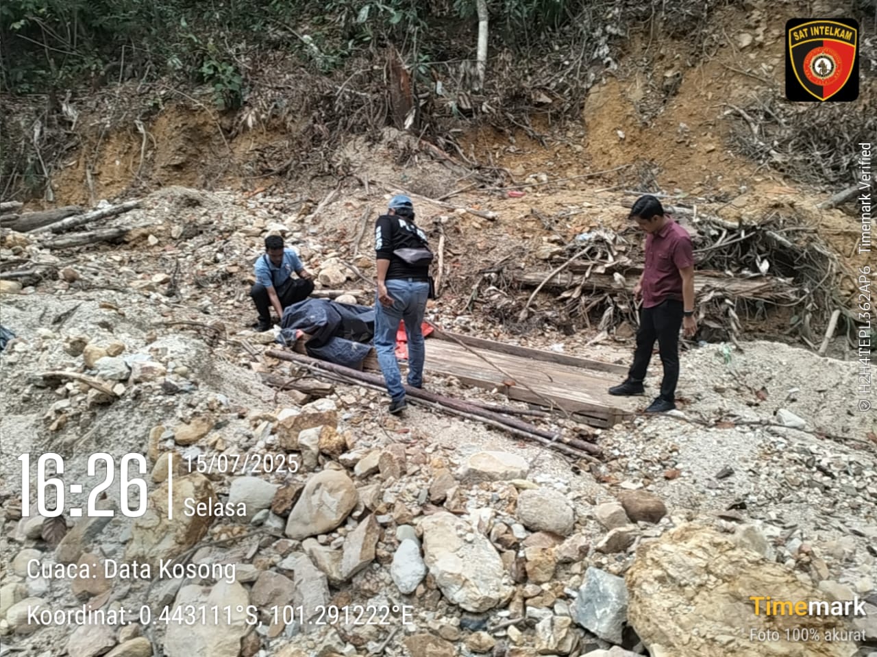 Namun, saat pengecekan dilakukan, tidak ditemukan adanya aktivitas penambangan maupun alat berat di lokasi. Para petugas segera mengambil tindakan dengan merusak tenda dan stingkai agar tidak dapat dipergunakan kembali serta mendokumentasikan kondisi lokasi sebagai bahan laporan kepada pimpinan.