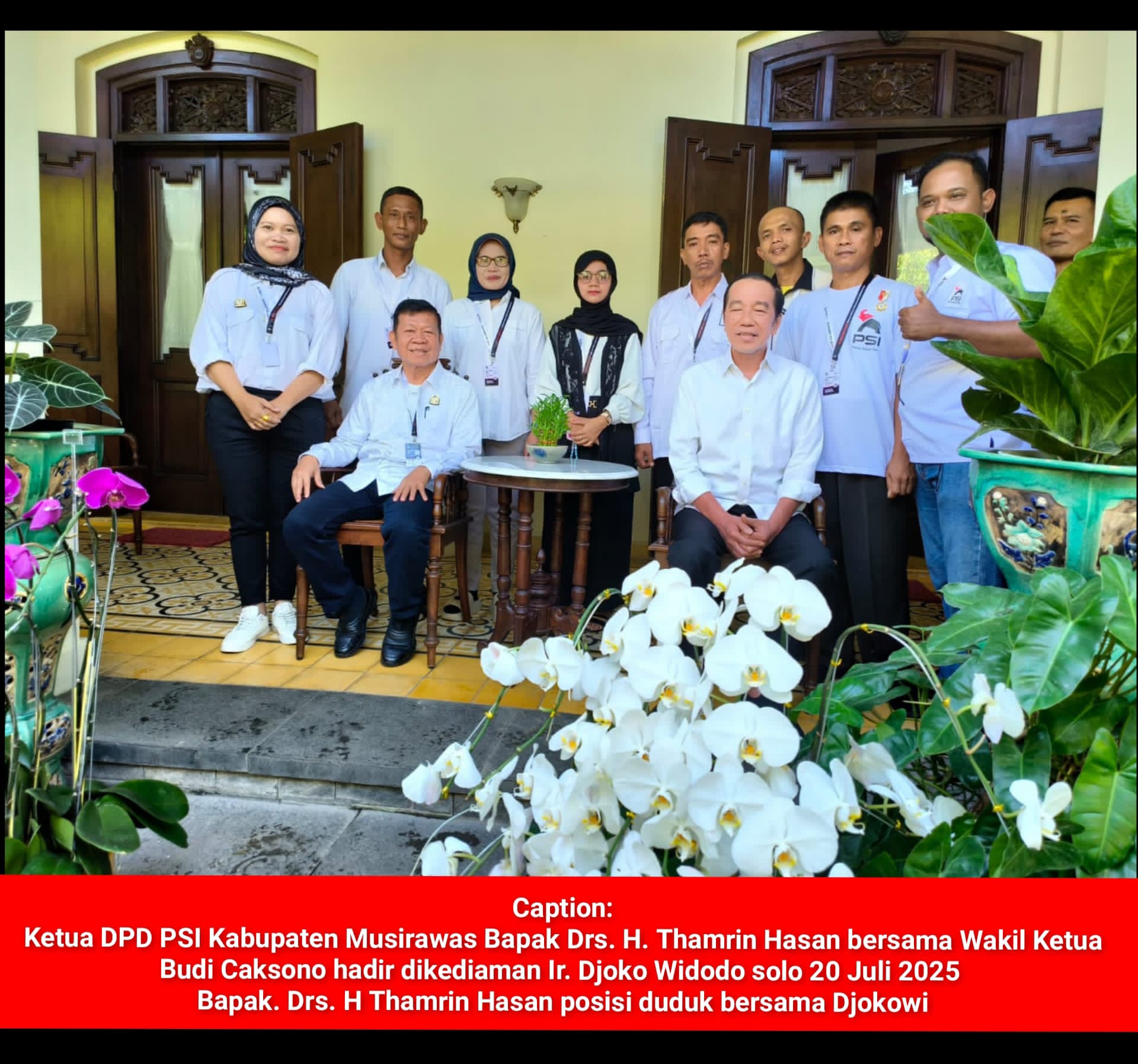 Solo, Faktahukumnusantara.com— Ketua DPD Partai Solidaritas Indonesia (PSI) Kabupaten Musi Rawas, Bapak H. Drs. Thamrin Hasan, bersama Wakil Ketua II Budi Caksono, menghadiri penutupan Kongres Nasional PSI di Kota Solo, Jawa Tengah. Acara ini sekaligus menjadi momen bersejarah dengan terpilihnya Kaesang Pangarep sebagai Ketua Umum PSI periode 2025–2030 melalui sistem e-voting nasional, Minggu (20/7/2025).