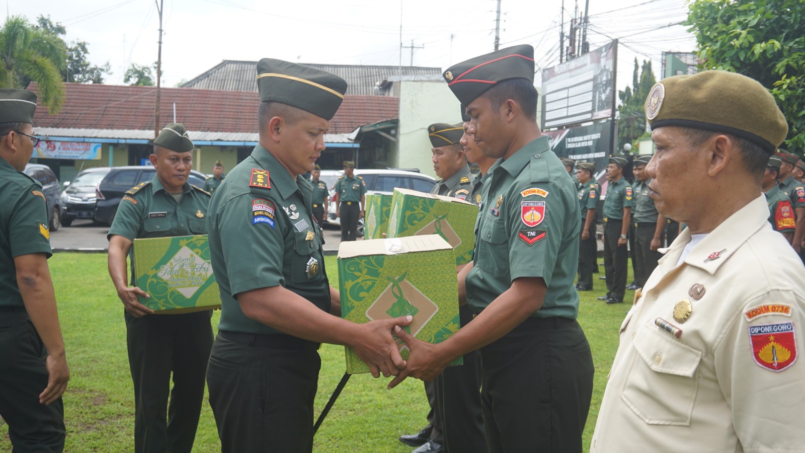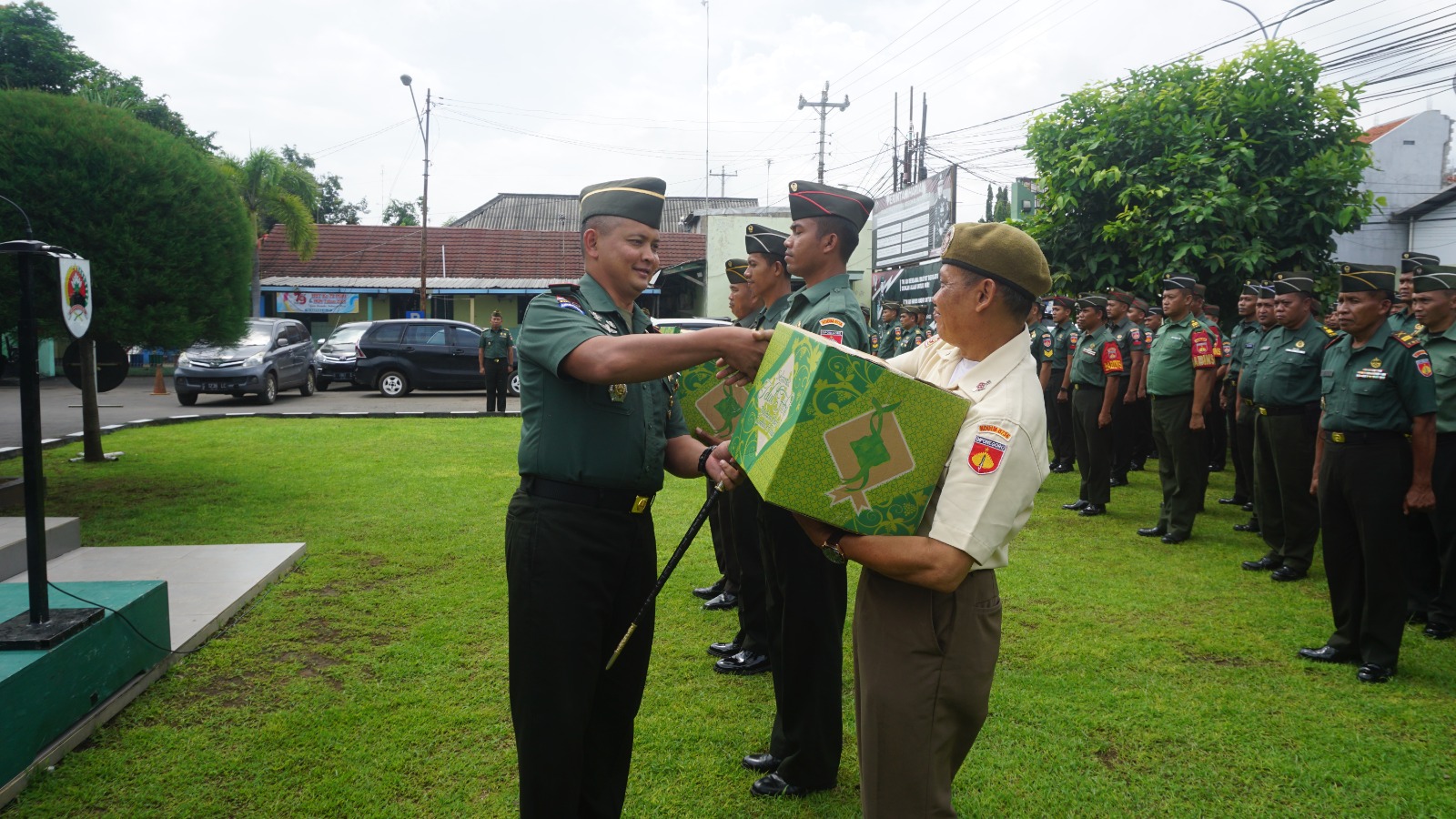 Batang,- Komandan Kodim 0736/Batang Letkol Inf Ahmad Alam Budiman memberikan THR (Tunjangan Hari Raya) dalam bentuk bingkisan paket lebaran kepada prajurit dan PNS secara simbolis, pada Kamis (27/03/2025) siang.